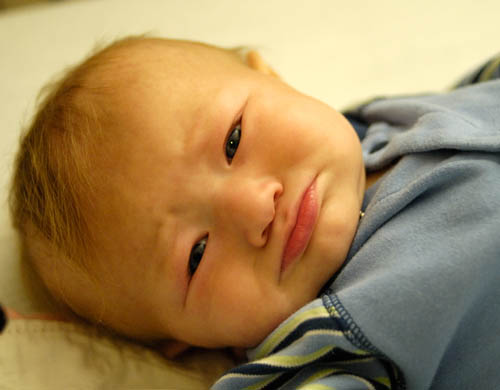 Wednesday Jan 17 2007 A 3D CT scan was done of the tumor during the 48 hour chemo course, this is to measure the baseline size of it so it can be measured to determine the efficacy of the chemo upon it, his starting point is: 12.1 cm by 7.x cm by 6.x cm. UC Davis pathology is mostly done with their research, but alas nothing is particularly conclusive, they have some results but before finalizing their report they want to reconcile them with the results we're waiting for from Washington University, who should have received the sample this morning. It's likely they might have results by Friday and hopefully we might get the report either later Friday or Monday, although disappointingly at this point it's looking like an undifferentiated sarcoma, which means it's not well understood, there's no specific treatment course, and it's higher risk. Today Steven's staples were removed from the second biopsy incision, which fortunately was made in the same place as the first one, so he only appears to have been cut once. He's still on morphine, and now only orally, he's much more alert, eating well, had a few smiles and even a giggle today. Friday Jan 19, 2007 The bloating and puffiness is mostly gone, and his leg with the prior blood clot that hasn't entirely cleared up has gone back to an almost normal size. The belief is the lymph nodes had been compressed by the tumor and were causing problems with that leg. His tummy feels much softer and Dr Ducore seems satisfied with the results of the Chemo having reduced the size of the tumor, this having been deduced by touching his tummy rather than any official measuring at this point, which of course would subject him to unnecessary radiation just to measure him. He was sent home late today, Jenn came home with a box full of medicine, and more that I had to go get locally. All are orally administered except the Neupogen which is a shot in his leg, fortunately only once a day this time, he's not happy about it but it's better than being stuck in the hospital. A bit of a panic Friday night as he threw up at about 1am in his crib. Fortunately his temperature was fine so we cleaned him up and moved him to the swing where he slept much better. Saturday Jan 20, 2007 Sunday Jan 21, 2007